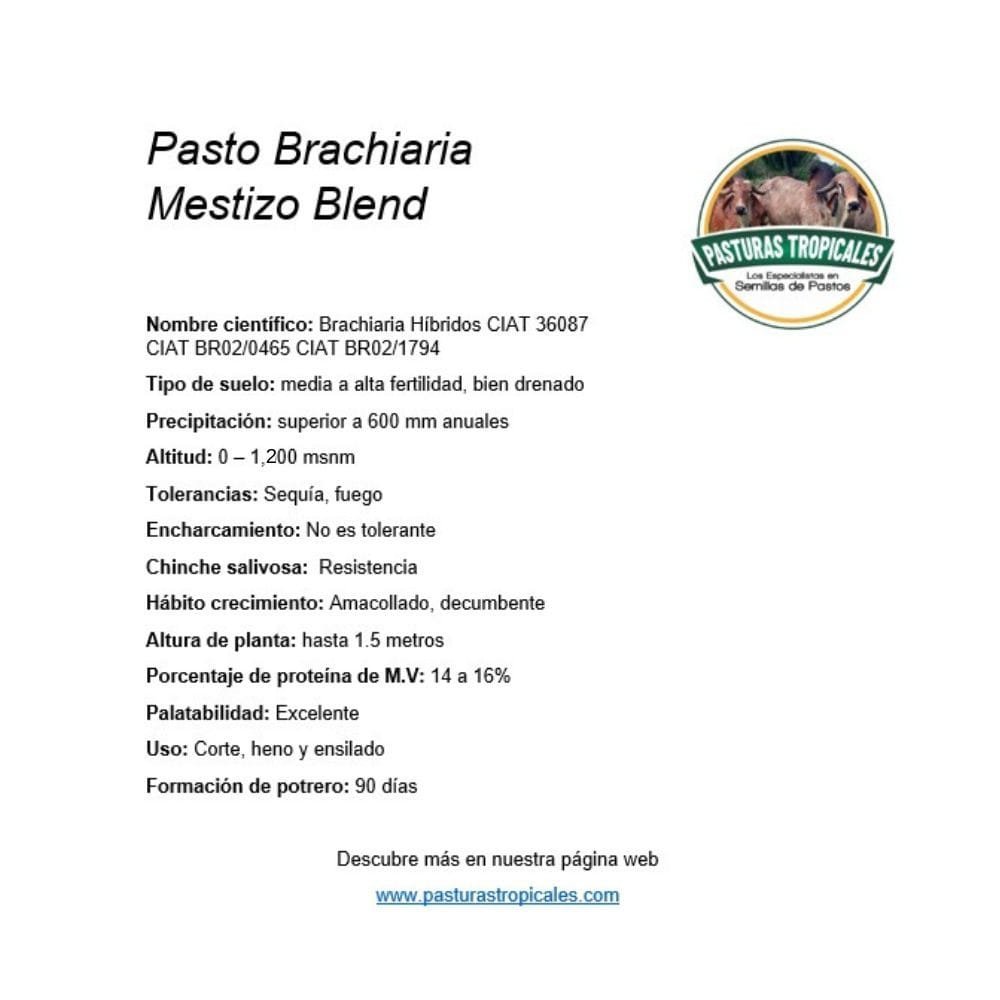 Mestizo blend es una mezcla de los mejores híbridos de Brachiaria. Esta mezcla está constituida por: